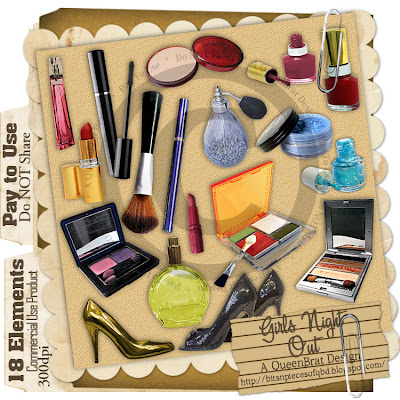18 Makeup elements that can be used to accent your tags and layouts or elements in your kits. Commercial Use is allowed. Scrapper and tagger size available.